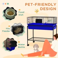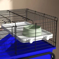 PawHut accounts for you and your pet. When you remove this indoor bunny cage from its stand, you can set it right in front of you on a table or put it on the floor, giving you a way to let the animal exit by themselves independently, so they can roam around as they please. The stand features a shelf and wheels, so you can save storage space and rearrange as needed. Features: - Removable from stand to allow pets to exit on their own independently or to place the cage on a table where you can show people - Shelf storage saves space in cabinets, closets, etc. - Easy to roll around on wheels for rearranging without carrying - Home for guinea pigs, chinchillas, pet minks, ferrets, hedgehogs, and other small-sized pets - Two doors, one on top, one in front - Simple assembly required - Note: Please provide chinchillas with a chew toy so that they don't chew the plastic. Not suitable for hamsters or rats. Specification: - Color: Black, Charcoal Gray - Material: Steel, Polypropylene - Overall Dimensions: 33" L x 18.5" W x 35.25" H - Cage Dimensions: 33" L x 18.5" W x 14.75" H - Cage Base Dimensions: 33" L x 18.5" W x 6.25" H - Door Dimensions: 8.25" W x 6" H (Front). 17.5" W x 13.75" H (Top) - Stand Dimensions: 33" L x 18.5" W x 26" H - Bottom Shelf Height: 7" (Off the ground) - Platform Dimensions: 17.25" L x 9.75" W - Ramp Dimensions: 15.5" L x 5" W - Food Dish Dimensions: 5.5" Dia. x 2.25" H - Water Bottle Capacity: 250 ml - Hay Feeder Dimensions: 9.5" L x 2.75" W x 6" H - Wire Spacing Dimensions: 0.75" L - Weight Capacity (Shelf): 22 lbs. - Item Label: D51-203V02CG Package Includes: - 1 x Small Animal Habitat - 1 x Manual PawHut accounts for you and your pet. Specification: - Color: Black, Blue - Material: Steel, Polypropylene - Overall Dimensions: 33" L x 18.5" W x 35.25" H - Cage Dimensions: 33" L x 18.5" W x 14.75" H - Cage Base Dimensions: 33" L x 18.5" W x 6.25" H - Door Dimensions: 8.25" W x 6" H (Front). - Item Label: D51-203V02BU Package Includes: - 1 x Small Animal Habitat - 1 x Manual PawHut accounts for you and your pet. Specification: - Color: Red, White - Material: Steel, Polypropylene - Overall Dimensions: 33" L x 18.5" W x 35.25" H - Cage Dimensions: 33" L x 18.5" W x 14.75" H - Cage Base Dimensions: 33" L x 18.5" W x 6.25" H - Door Dimensions: 8.25" W x 6" H (Front). - Item Label: D51-203V02RD Package Includes: - 1 x Small Animal Habitat - 1 x Manual.